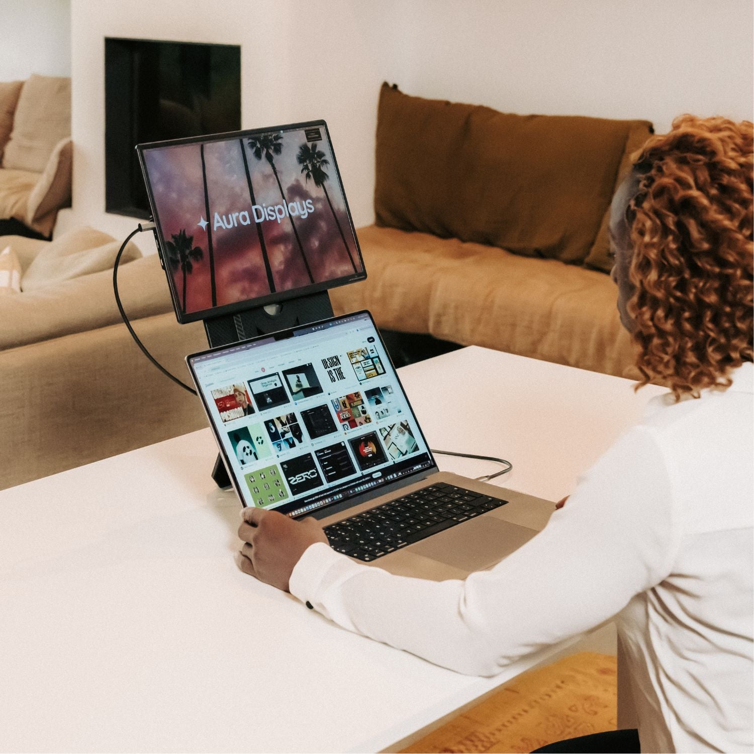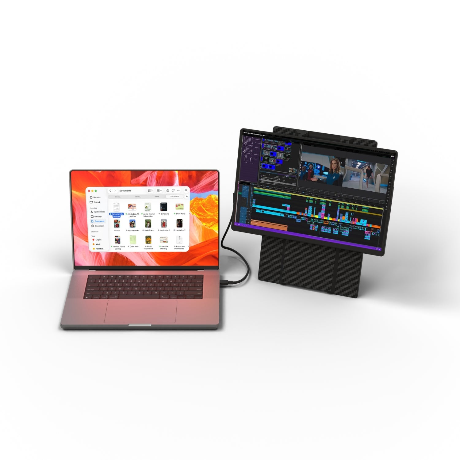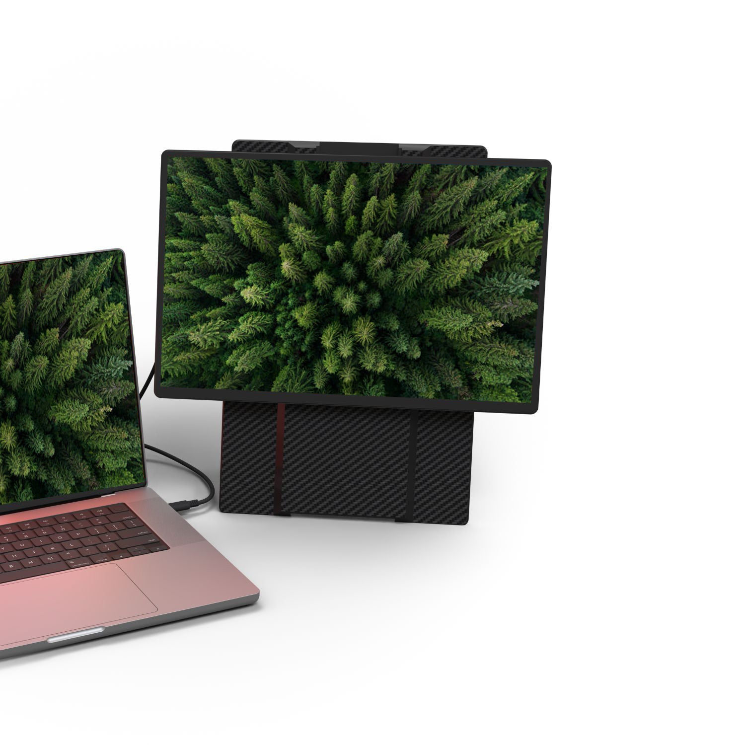 Only one USB-C cable connected to your laptop is needed to transmit video and activate the screens.