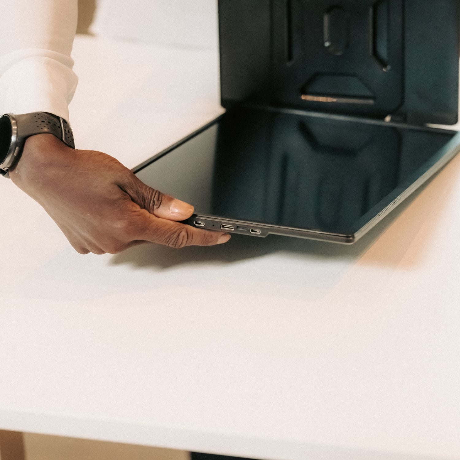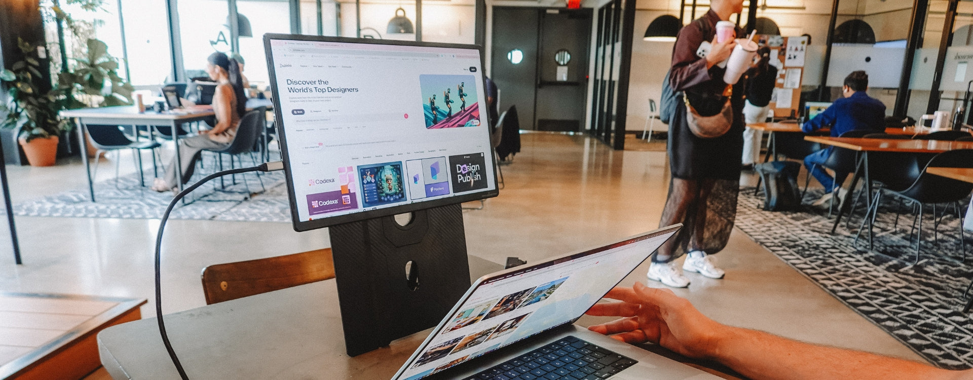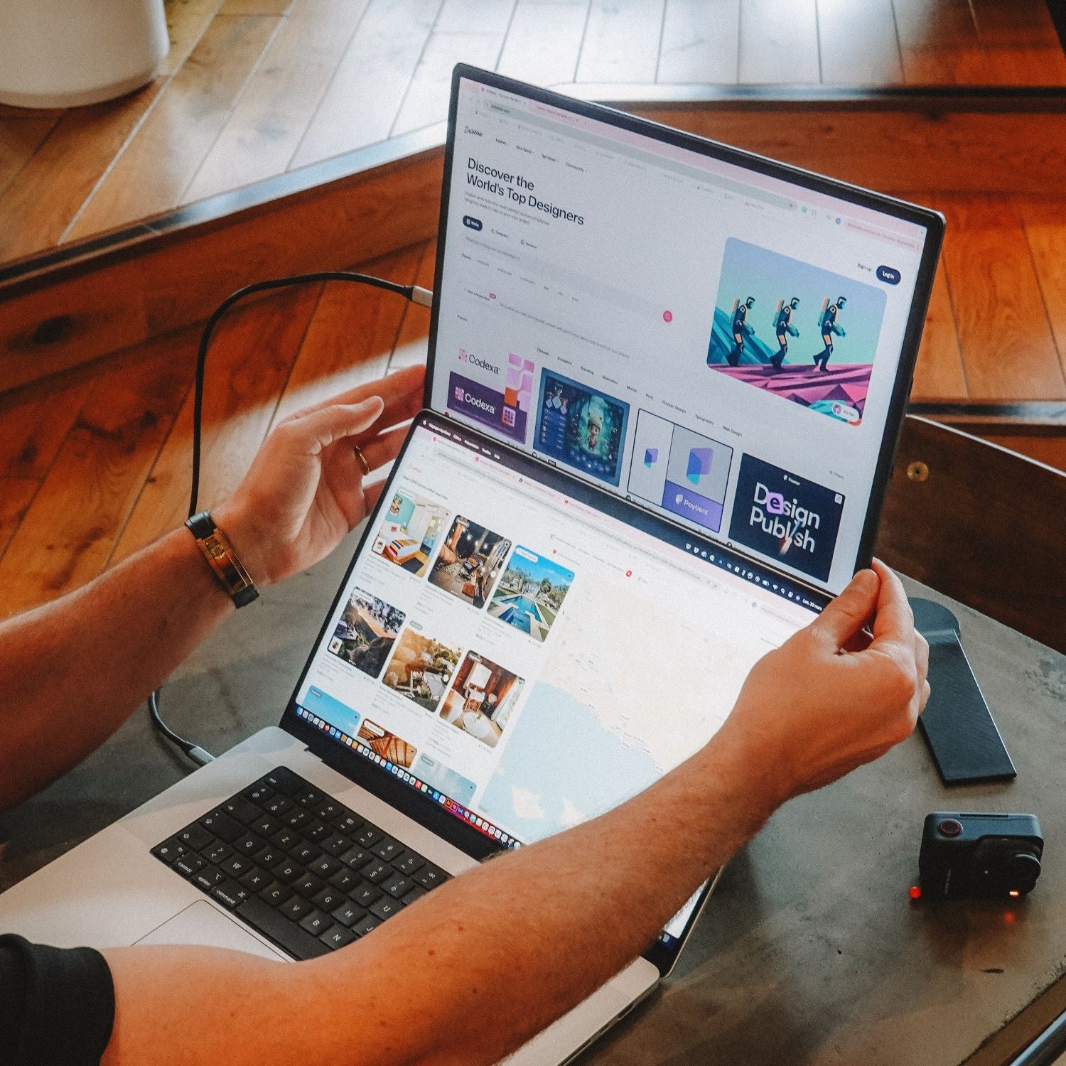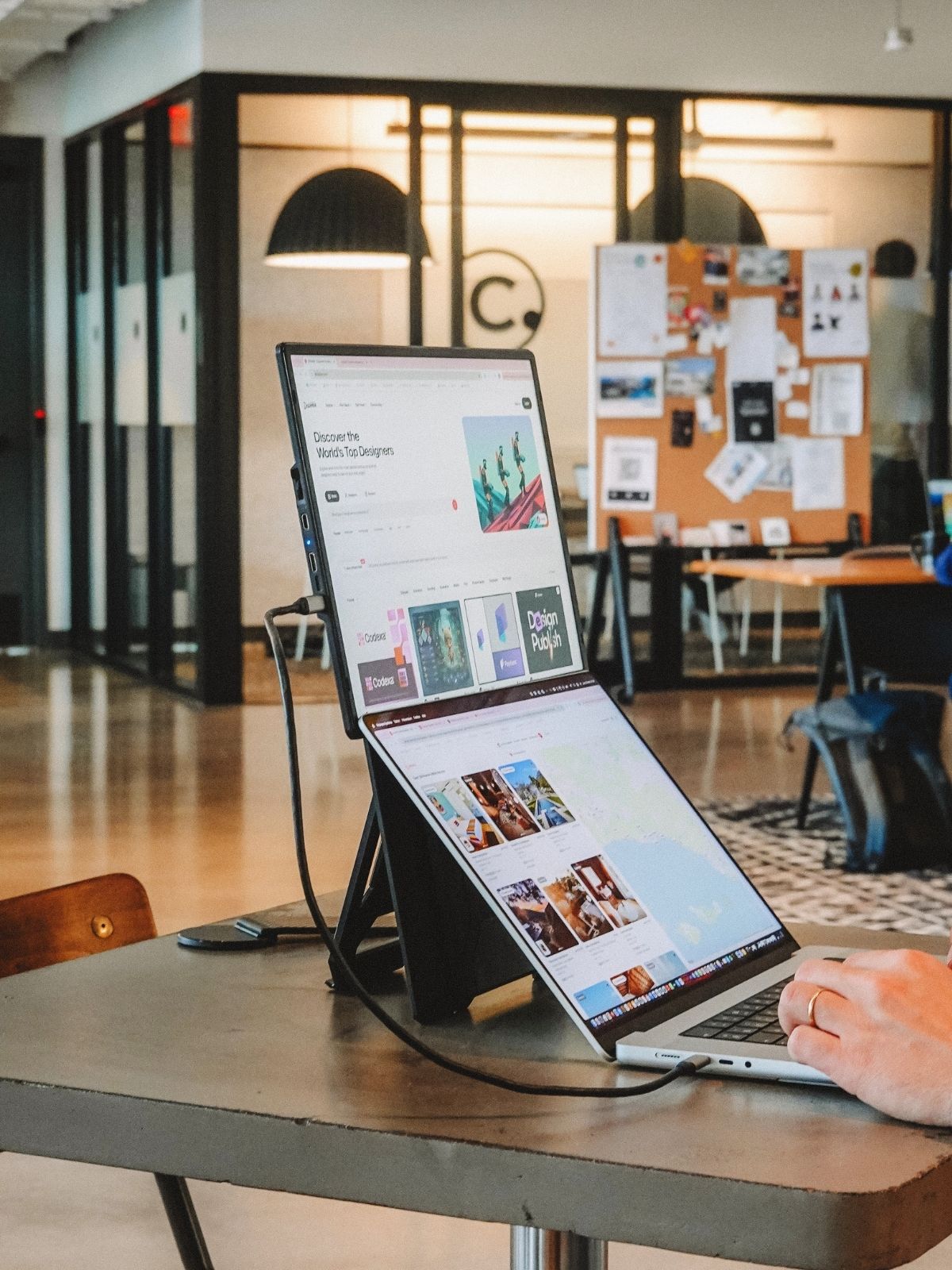 Only one USB-C cable connected to your laptop is needed to transmit video and activate the screens.